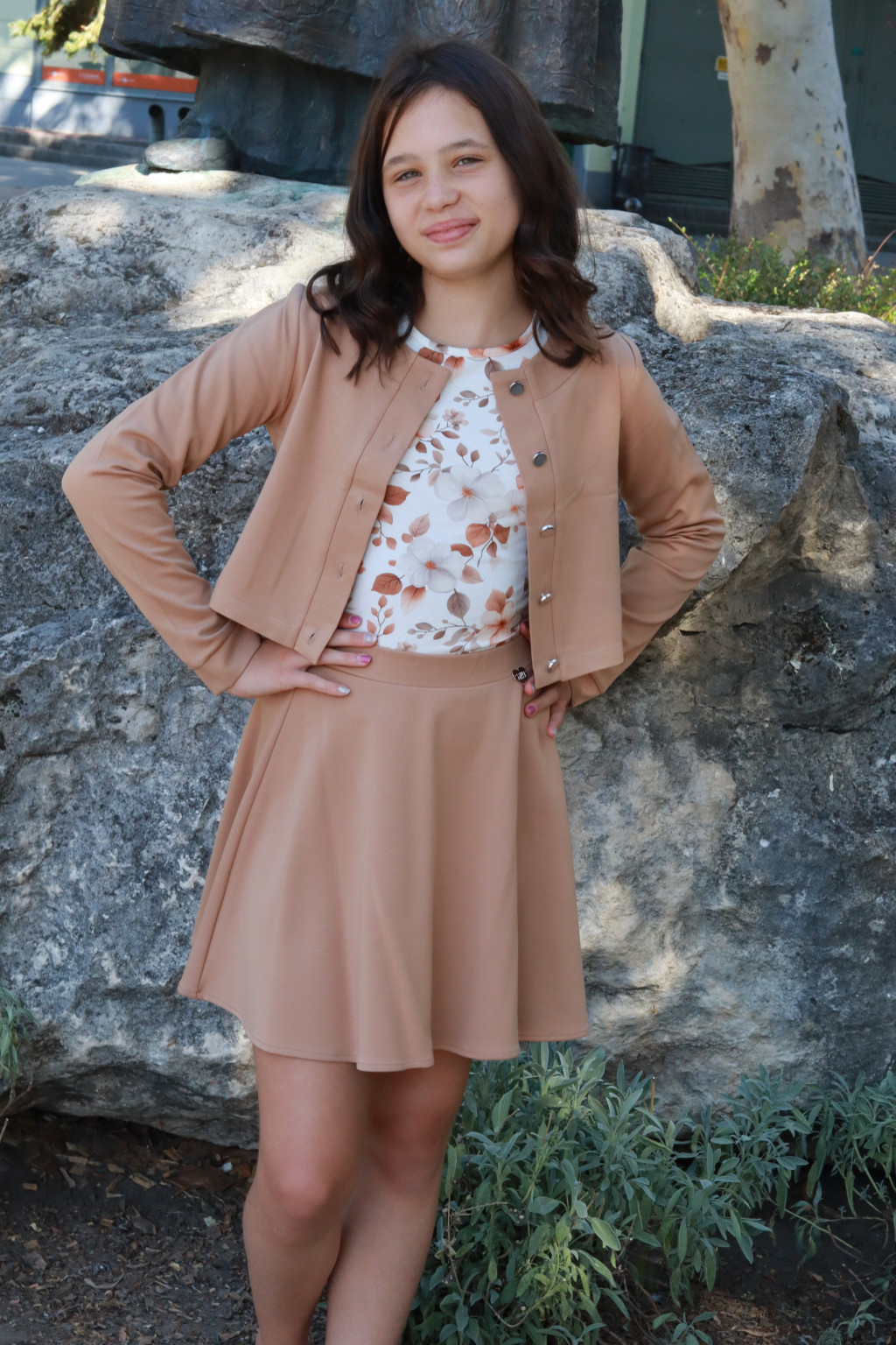 Lány blézer szoknyás Pamut együttes caramell