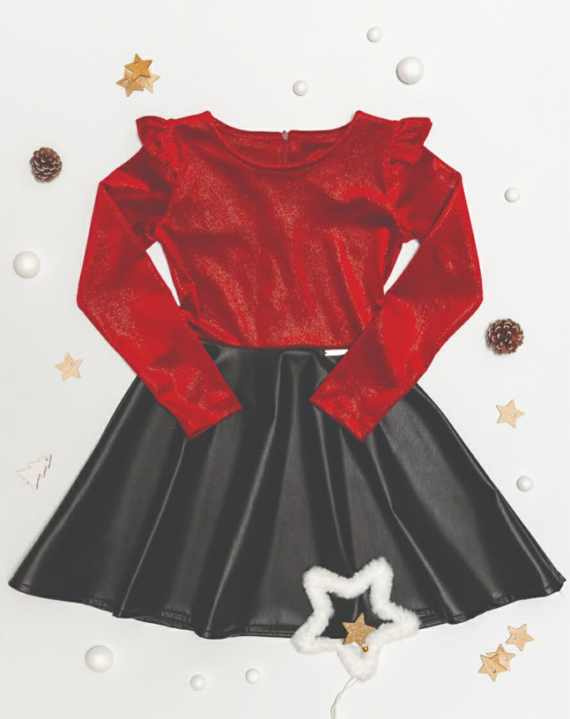 Lány piros csillogó alul bőr hatású ünneplő ruha