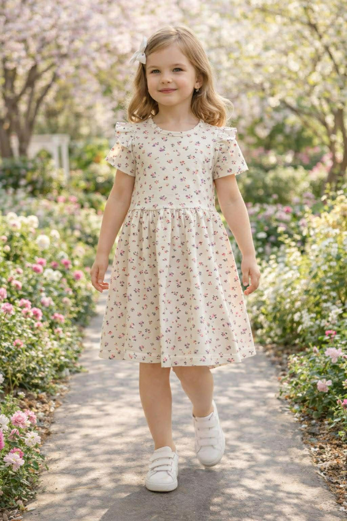 Lány virág mintás pamut ruha